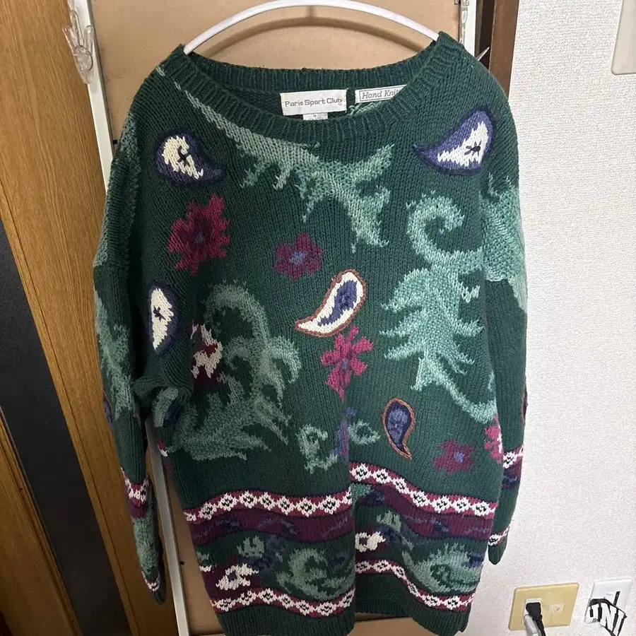 다색 패턴의 핸드 니트 스웨터, 울 혼방 소재로 따뜻합니다. - 브랜드: Paris Sport Club - 스타일: 핸드 니트 - 색상: 그린 - 디자인: 다색 패턴 - 소재: 울 혼방 방문해 주셔서 감사합니다. 사이즈 - M