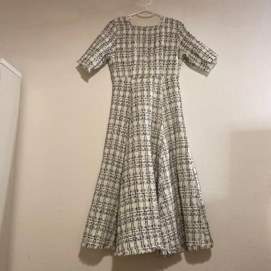 화이트 계열의 체크 무늬 반팔 A라인 원피스입니다. 트위드풍 소재가 특징입니다. - 색상: 화이트 계열 (체크 무늬) - 소매 길이: 반팔 - 스타일: A라인 - 소재: 트위드풍 - 디자인: 체크 무늬 기장: 113cm (손으로 측정하여 약간의 오차가 있을 수 있습니다.) 무릎 아래 기장의 트위드 원피스로, 밑단은 프린지 장식이 있습니다. 캐주얼한 자리에도 스마트한 자리에도 착용 가능하다고 생각합니다. 방문해 주셔서 감사합니다.
