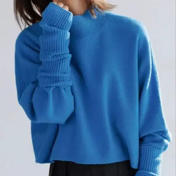 포근포근 니트 크롭 하이넥 블루