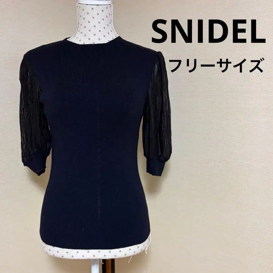 쉬폰 소재의 퍼프 슬리브가 특징인 핏 니트탑.