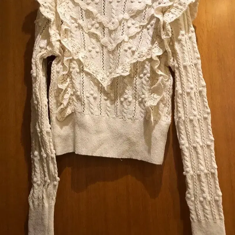 프릴과 짜임 무늬가 특징인 아이보리 색상의 긴팔 스웨터. - 색상: 아이보리 - 사이즈: M - 디자인: 프릴 장식, 짜임 무늬 - 스타일: 긴팔, 크롭 기장 - 브랜드: ZARA 방문해 주셔서 감사합니다. Zara의 봉제에 대해 이해하시는 분의 구매를 부탁드립니다. NC/NR로 부탁드립니다.