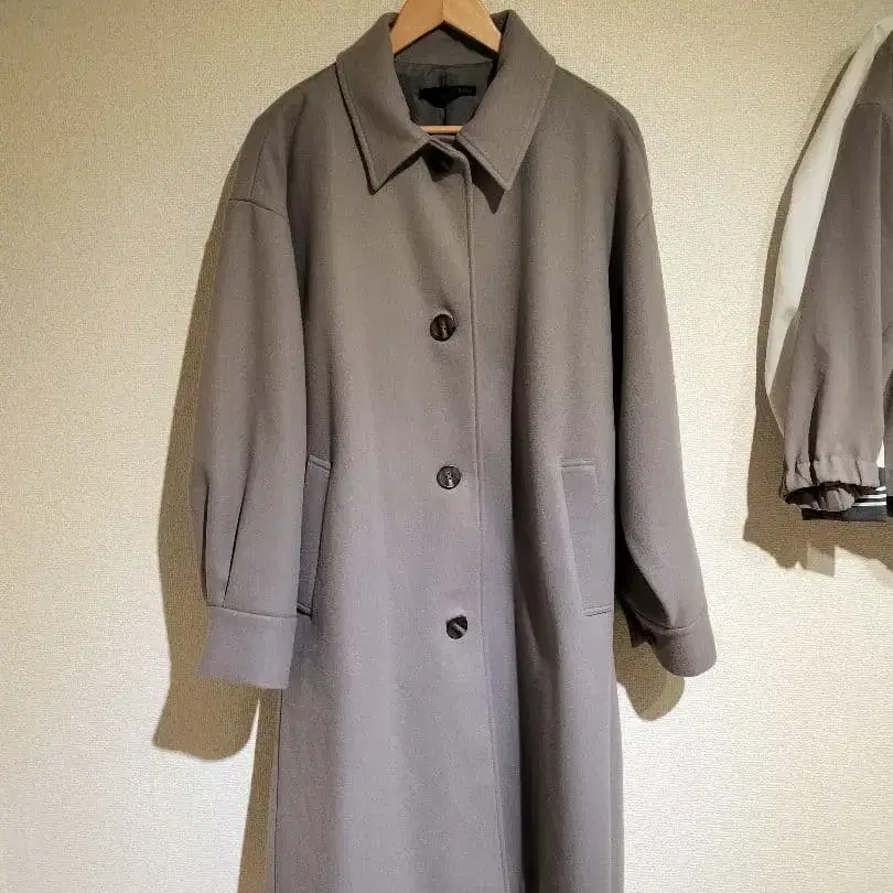 그레이 롱 코트 지퍼 포켓 부착