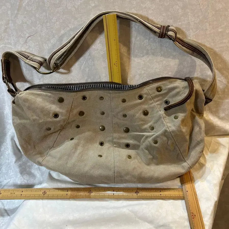 베이지 숄더백 스터드 부착