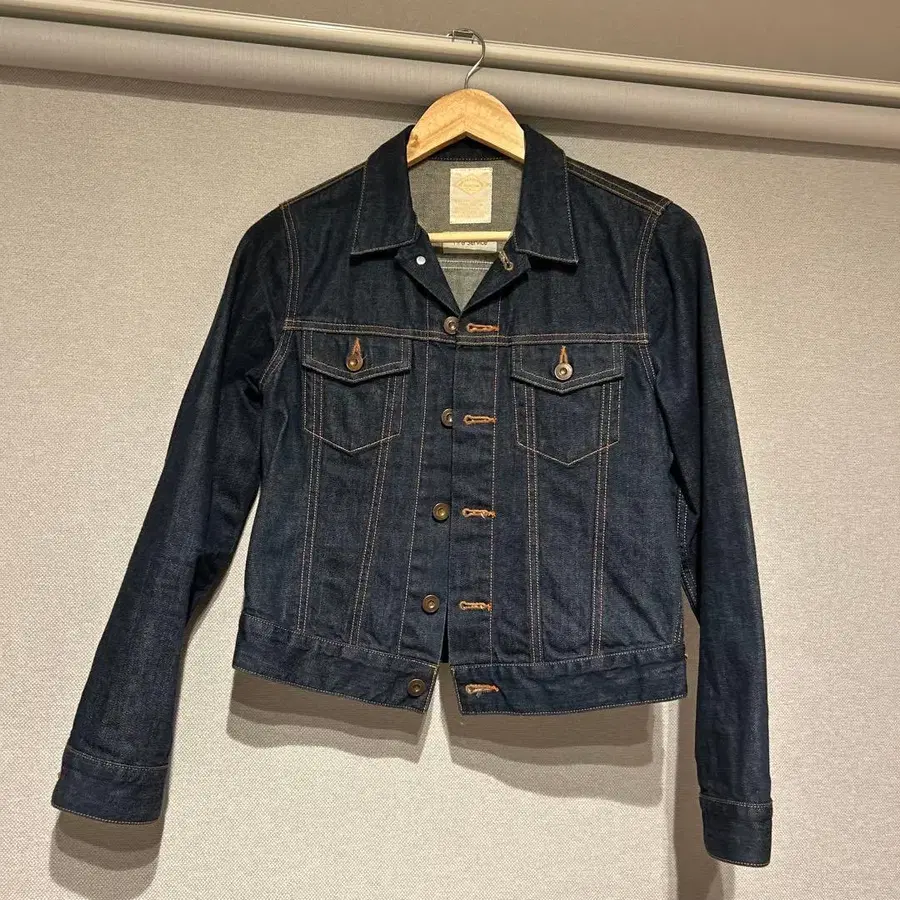 다크 데님 데님 자켓, 단추식이며 포켓이 있습니다. - 브랜드: Fire Service - 색상: 다크 데님 - 스타일: 데님 자켓 - 디자인: 단추식, 포켓 부착 - 안쪽 택: Fire Service 안쪽에 얼룩이 1곳 있지만, 거의 입지 않아 새상품급에 가깝다고 생각합니다. 방문해 주셔서 감사합니다.