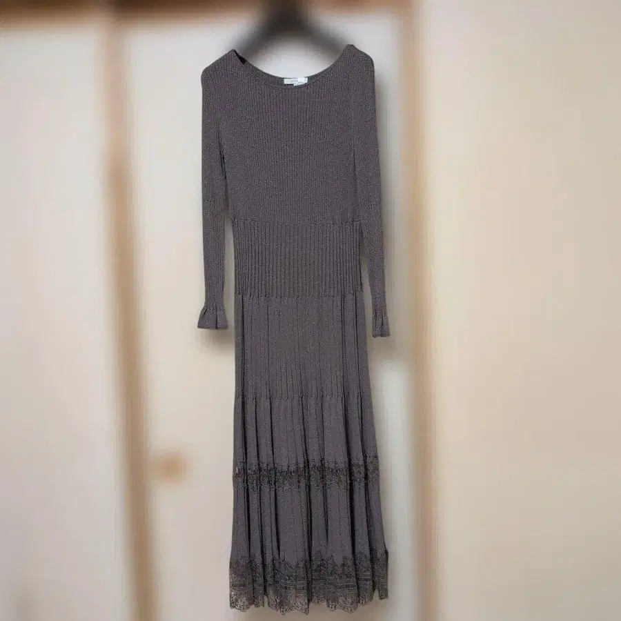 백화점 에포카샵 구매 에포카의 리브 디자인 보르도 브라운 색상의 긴팔 니트 원피스입니다. 밑단 등에 레이스가 달려 있어 매우 엘레강트하고 멋스럽습니다.