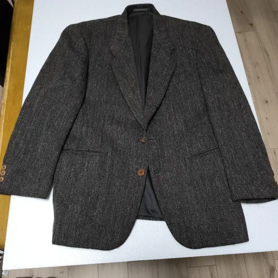 해리스 트위드 헤링본 테일러드 자켓 그레이 울 M