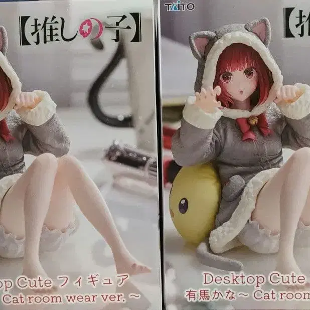 고양이 귀가 달린 후드 부착 데스크탑 피규어, 귀여운 포즈로 인테리어에 최적입니다.