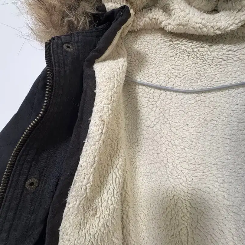 카키 2WAY 모즈 코트 보아 안쪽