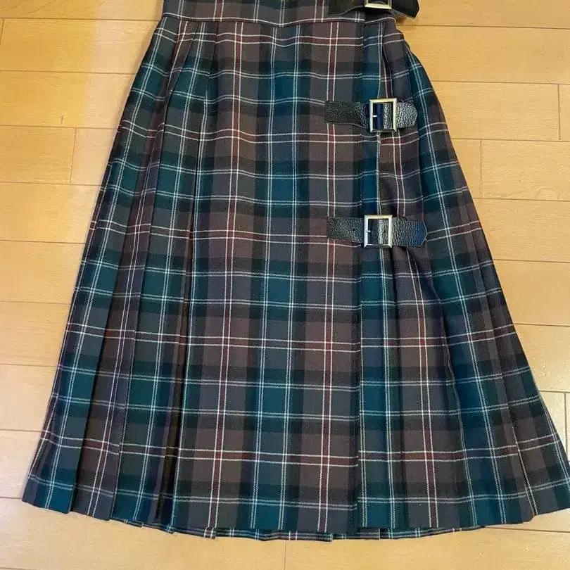 새상품급 GLEN NEVIS 타탄 체크 롱 플리츠 랩스커트 L