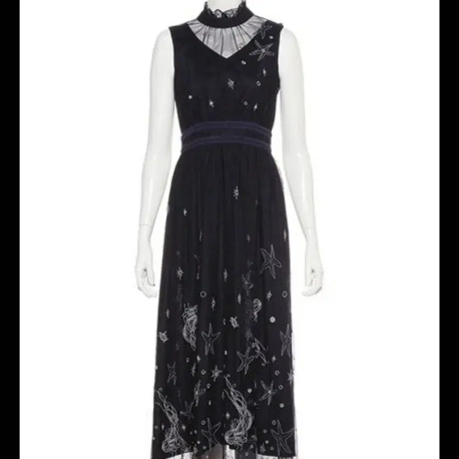 안티카 블랙 패턴 절개 롱 원피스