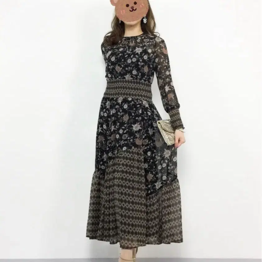 snidel 롱 원피스 꽃무늬 긴팔 블랙