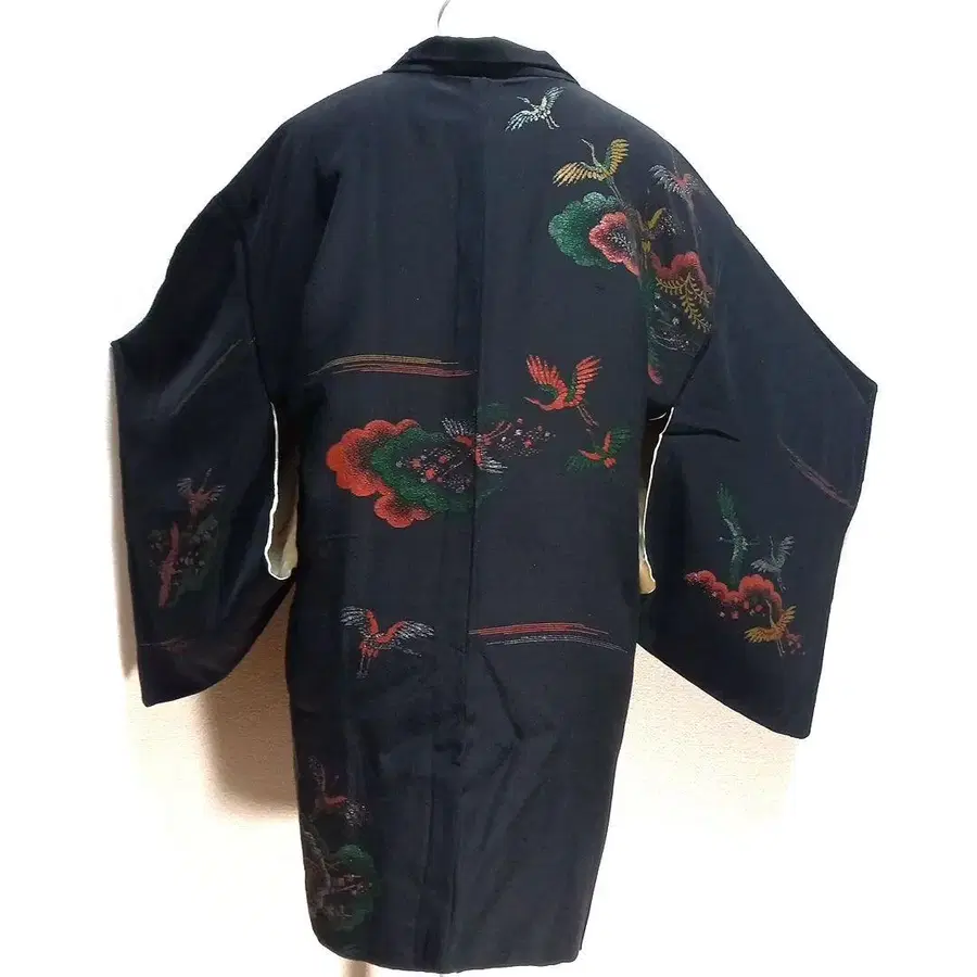 레트로 실크 블랙 베이스 학 문양 겉옷