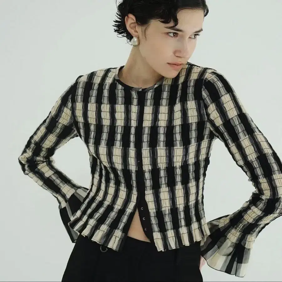 CLANE 클라네 SHIRRING DESIGN BLOUSE MIX