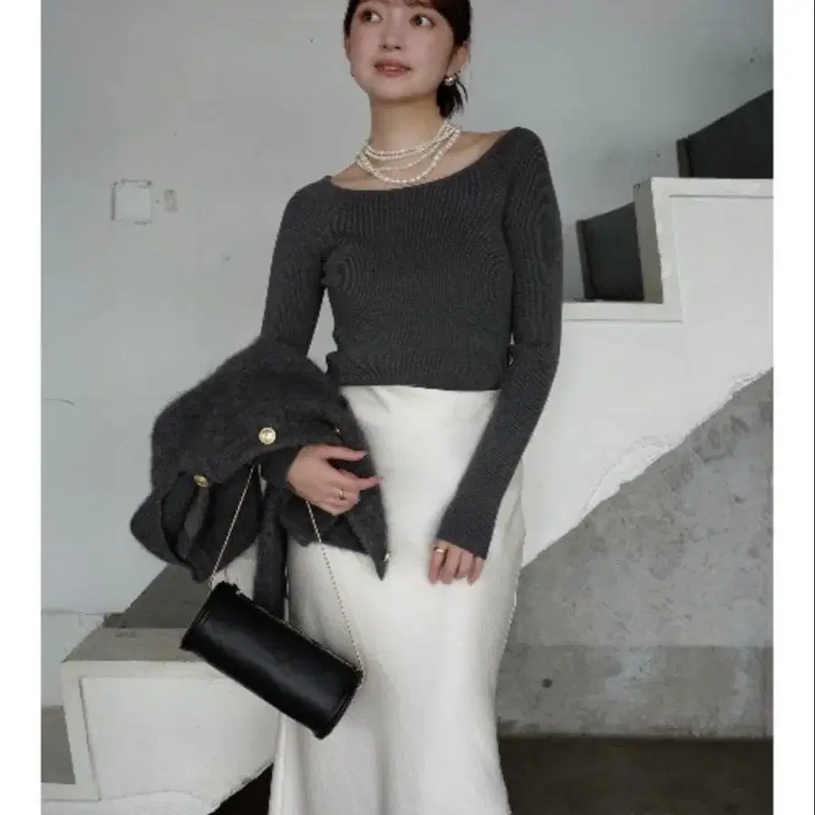 아뉴앙스 실크 캐시미어 블렌드 보트넥 니트
