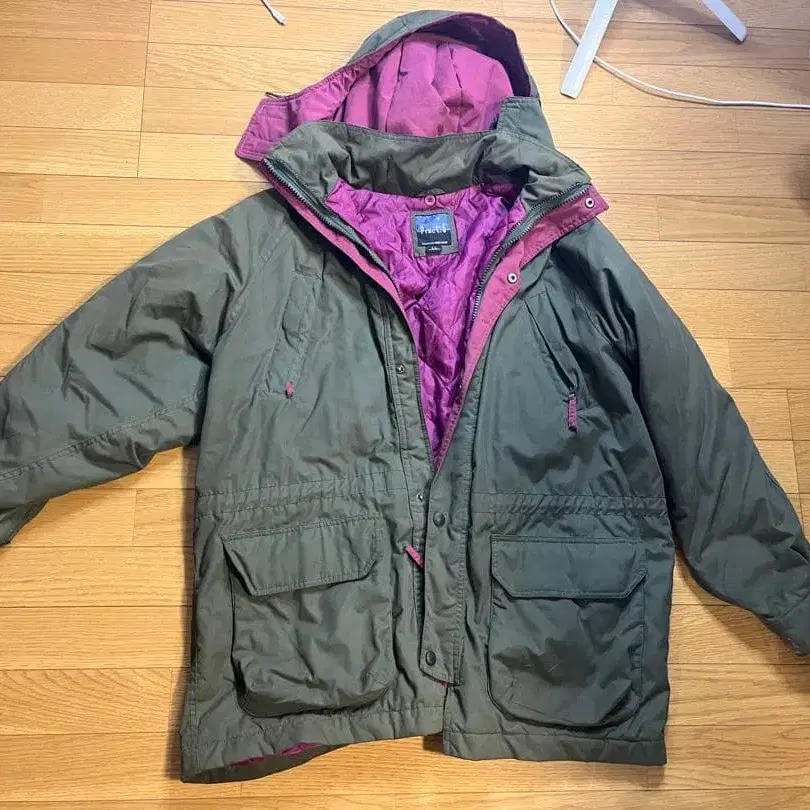 올리브 그린 나일론 자켓, 퍼플 안쪽, 사이즈 M. 12/26 - 색상: 올리브 그린 - 안쪽 색상: 퍼플 - 사이즈: M (96-104) 방문해 주셔서 감사합니다.