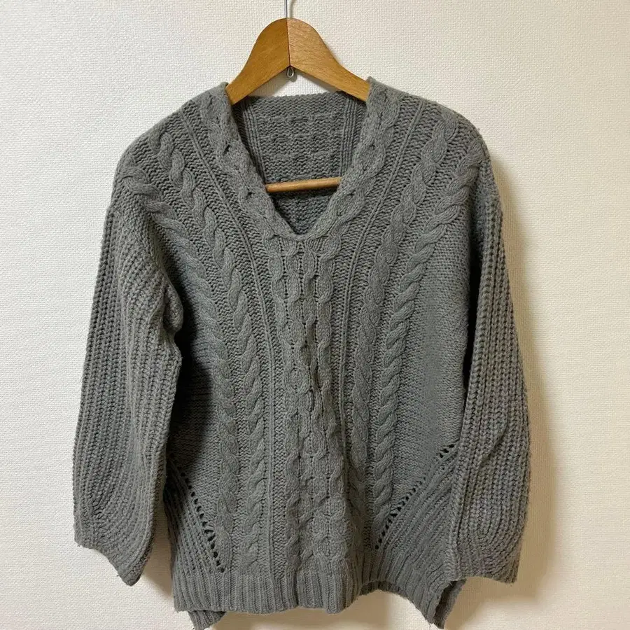 v neck cable loose knit / 브이넥 케이블 루즈 니트