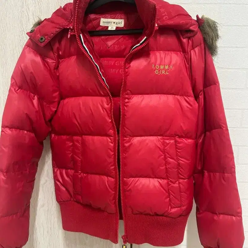 TOMMY GIRL 후드 부착 레드 다운 자켓 S 사이즈