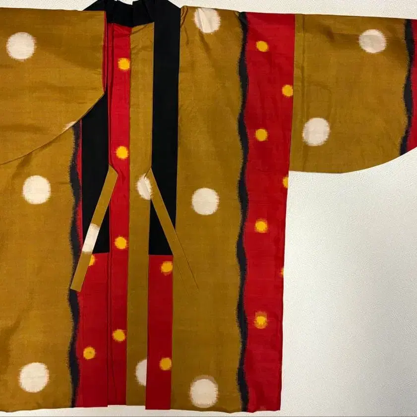 추억의 쇼와 시대 일본풍 패턴 명선 기모노 원단으로 만든 반텐입니다. 솜이 들어가 있어 매우 따뜻합니다. 착용할 기회가 없어 옷장에 보관했던 것입니다. 미사용이지만, 보관으로 인한 노후화를 이해하신 후 검토해 주시기 바랍니다. 기장 72cm 화장 63cm 폭 뒤폭 29 x 2 = 58cm 의류로는 M 사이즈에 해당할 것으로 생각됩니다. 초보자의 측정으로 인한 오차는 용서해 주십시오.