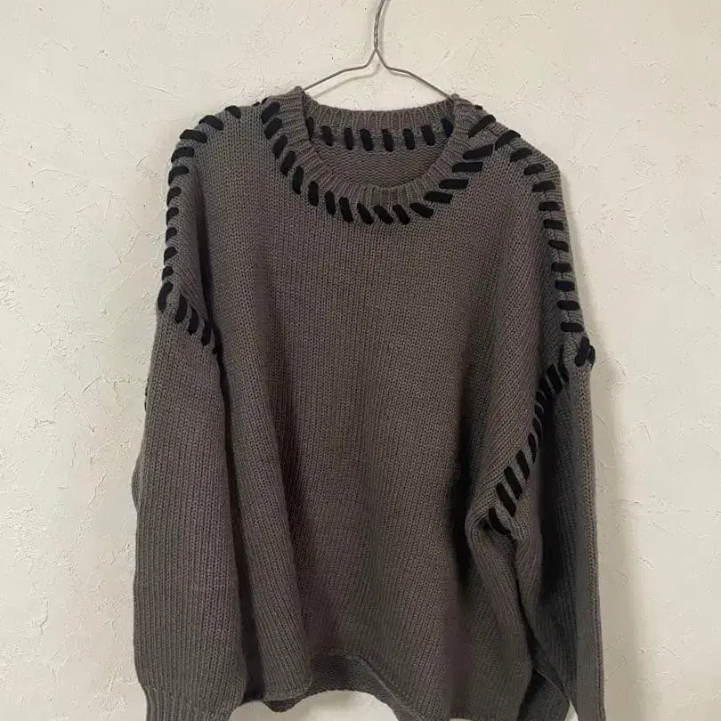 아크릴 100% 그레이 스웨터, 사이드에 블랙 디테일 포함. - 색상: 그레이 - 소재: 아크릴 100% - 사이즈: F - 디자인: 사이드에 블랙 디테일이 들어간 디자인 방문해 주셔서 감사합니다.