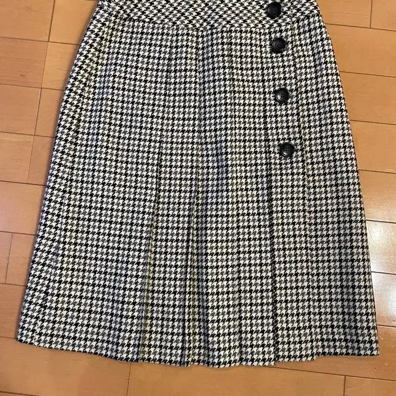 하운드투스 패턴의 플리츠 스커트, 블랙 버튼으로 스타일리시하게. - 디자인: 하운드투스 패턴 - 버튼: 블랙 버튼 3개 - 안감: 안감 부착 - 스타일: 플리츠 스커트 방문해 주셔서 감사합니다. ※ 발송 시 접힘 주름이 생길 수 있으니 미리 양해 부탁드립니다.