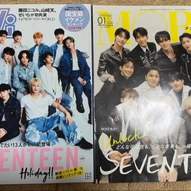 SEVENTEEN 특집이 게재된 일본어 잡지 2권 세트, A4 사이즈에 포스터 포함. - 타이틀: SEVENTEEN 특집 잡지 2권 세트 - 내용: SEVENTEEN 특집이 게재된 잡지 2권 - 발행년: 2023년 - 언어: 일본어 - 혜택: 포스터 포함 - 사이즈: A4 사이즈 방문해 주셔서 감사합니다.