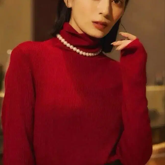 즉시 구매 OK Nouveau S 터틀넥 스웨터 긴팔 레드 가을 겨울용
