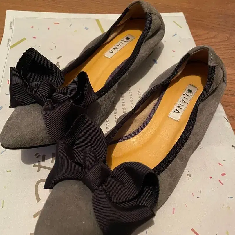 펌프스 23 로우힐 다이애나 DIANA 스웨이드 리본 플랫 브라운
