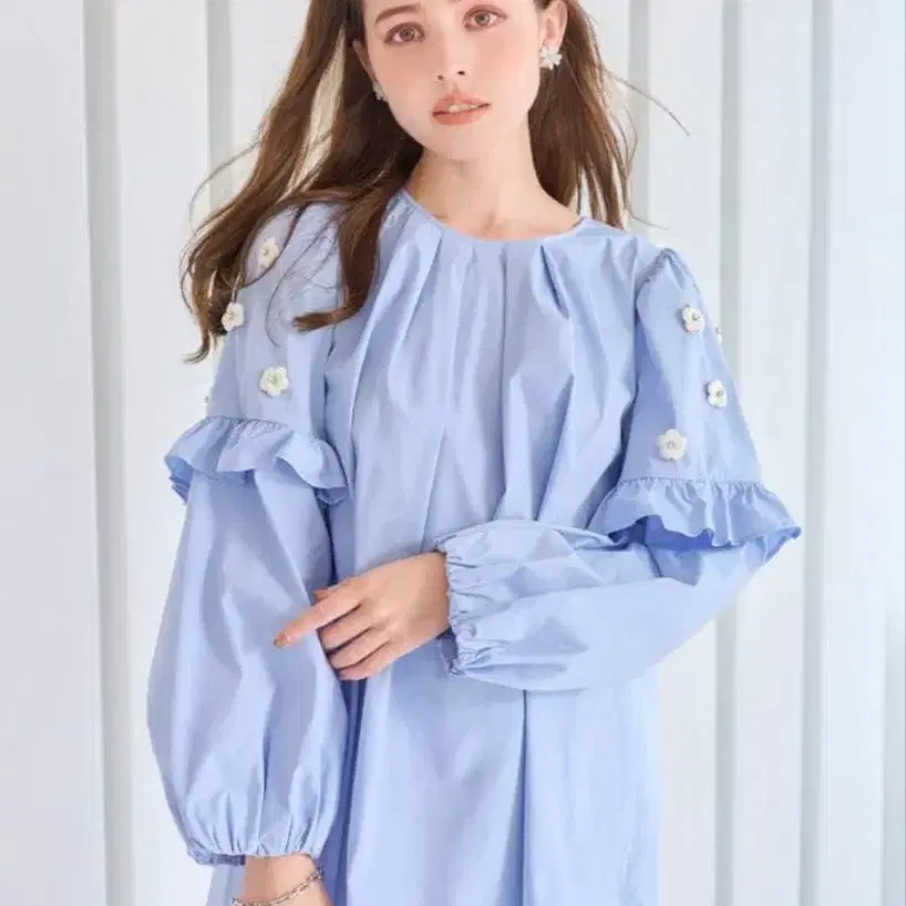 [새상품급] Chesty 플라워 슬리브 블라우스 블루 사이즈 0