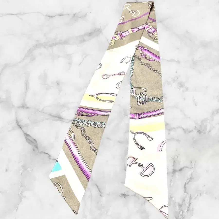 [컨디션 최상] FURLA 훌라 체인 패턴 리본 스카프 스카프 헤어밴드