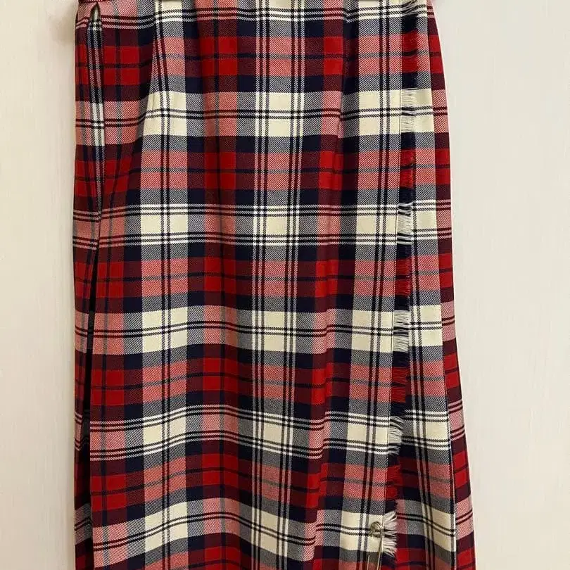 자동 번역되었어요. 원문보기빨간색, 화이트, 네이비 체크 무늬 플리츠 랩 스커트입니다.