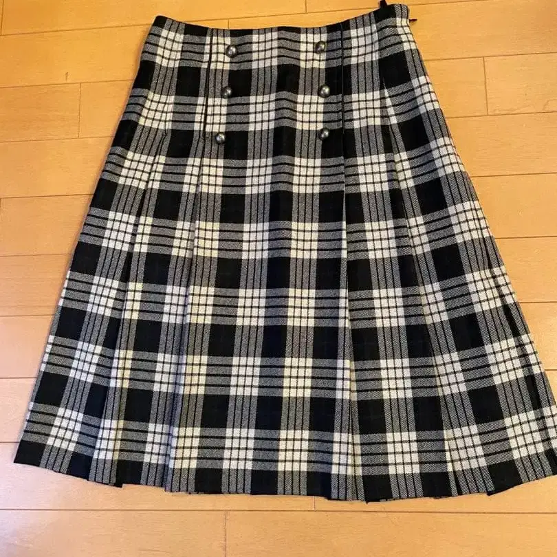 새상품급 GLEN NEVIS 타탄 체크 롱 플리츠 랩스커트 L