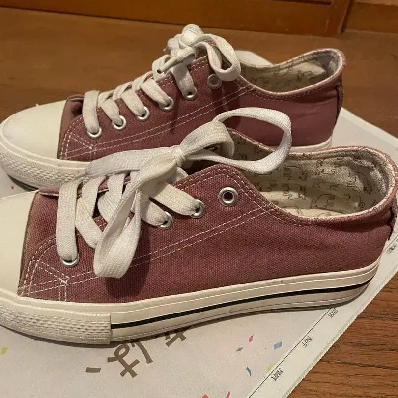 캔버스 소재의 핑크 로우컷 스니커즈. 신발 사이즈는 L 사이즈라고 적혀 있습니다. 평소 24cm를 신는 사람이 딱 좋게 신을 수 있습니다. - 색상: 핑크 - 소재: 캔버스 - 밑창 색상: 화이트 - 디자인: 로우컷 - 신발끈 색상: 화이트 - 신발 타입: 스니커즈 방문해 주셔서 감사합니다.
