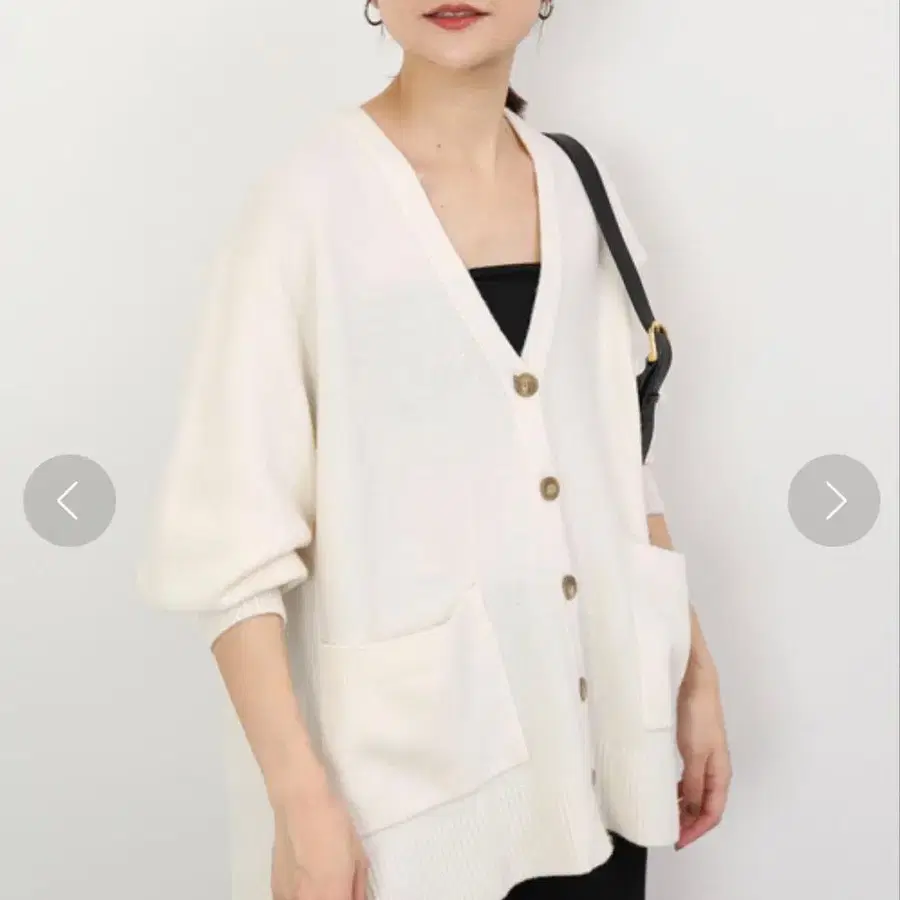 자동 번역되었어요. 원문보기울 혼방 아이보리 색상, 버튼이 달린 긴팔 가디건.