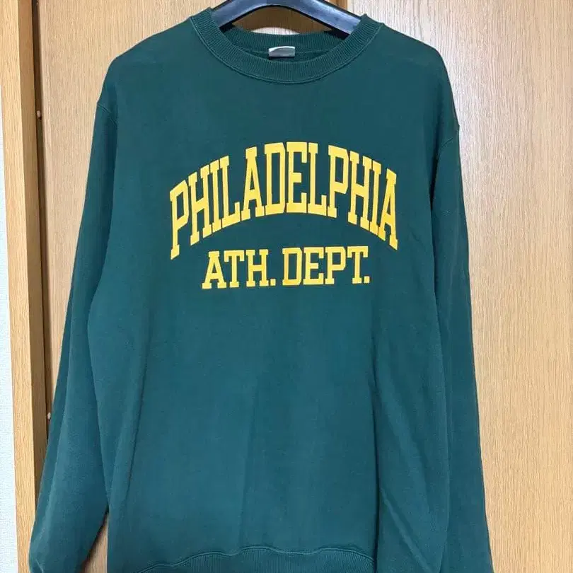 스포츠 용품점에서 구매한 챔피온 트레이닝복을 판매합니다. 사이즈는 XL이며 한 번 착용 후 세탁하여 보관했습니다. 가격 인하 협상은 삼가해 주시기 바랍니다. 다크 그린 색상의 Champion 트레이닝복, PHILADELPHIA ATH. DEPT. 프린트 포함. - 브랜드: Champion - 사이즈: X-LARGE - 색상: 다크 그린 - 디자인: PHILADELPHIA ATH. DEPT. 프린트 - 로고: Champion 로고 자수 방문해 주셔서 감사합니다.