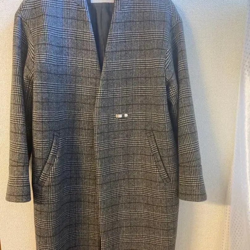 그레이 계열 체크 노카라 코트, 사이드 포켓 포함, 심플한 금속 클로징이 특징입니다. - 색상: 그레이 계열 체크 - 디자인: 노카라 - 포켓: 사이드 포켓 있음 - 장식: 심플한 금속 클로징 - 스타일: 롱 기장 참고로 153cm 기준으로 종아리 정도의 기장입니다. 방문해 주셔서 감사합니다.
