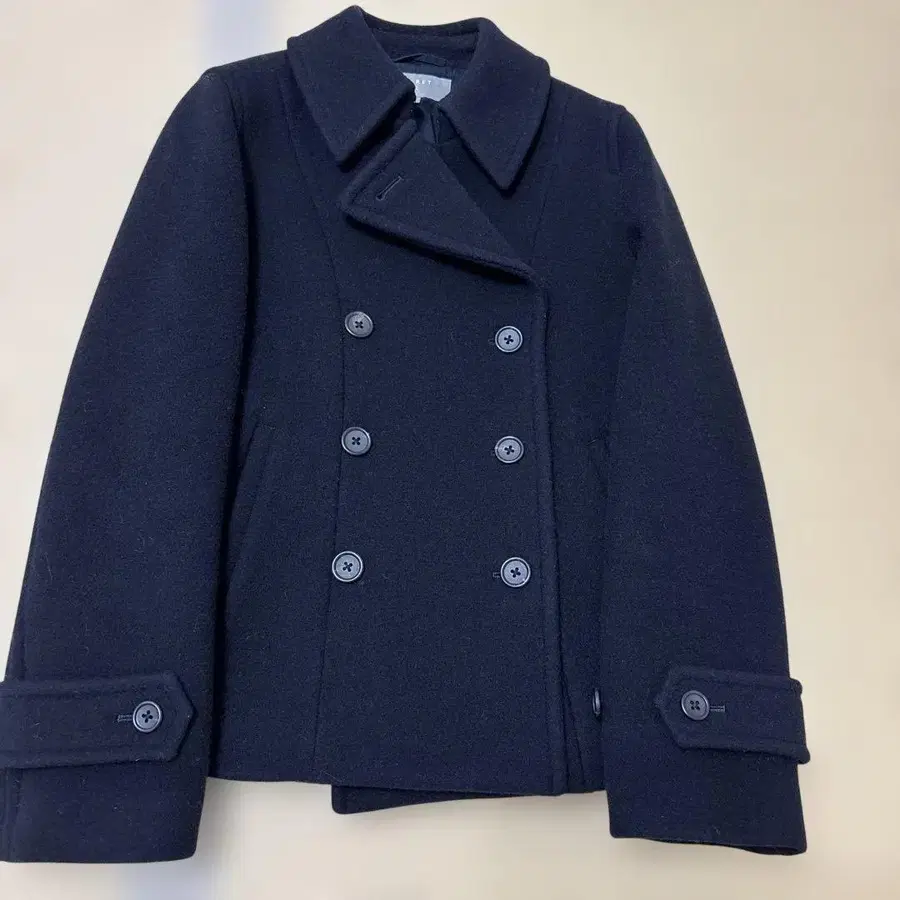 네이비 더블 브레스트 울 P 코트