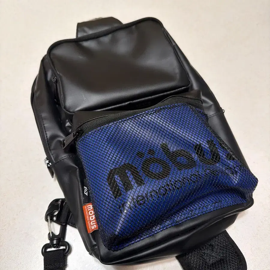 나일론 소재의 블랙과 네이비 색상 숄더백, 메쉬 포켓이 부착되어 기능적입니다. - 브랜드: möbus - 색상: 블랙/네이비 - 소재: 나일론 - 타입: 숄더백 - 특징: 메쉬 포켓 부착 방문해 주셔서 감사합니다.