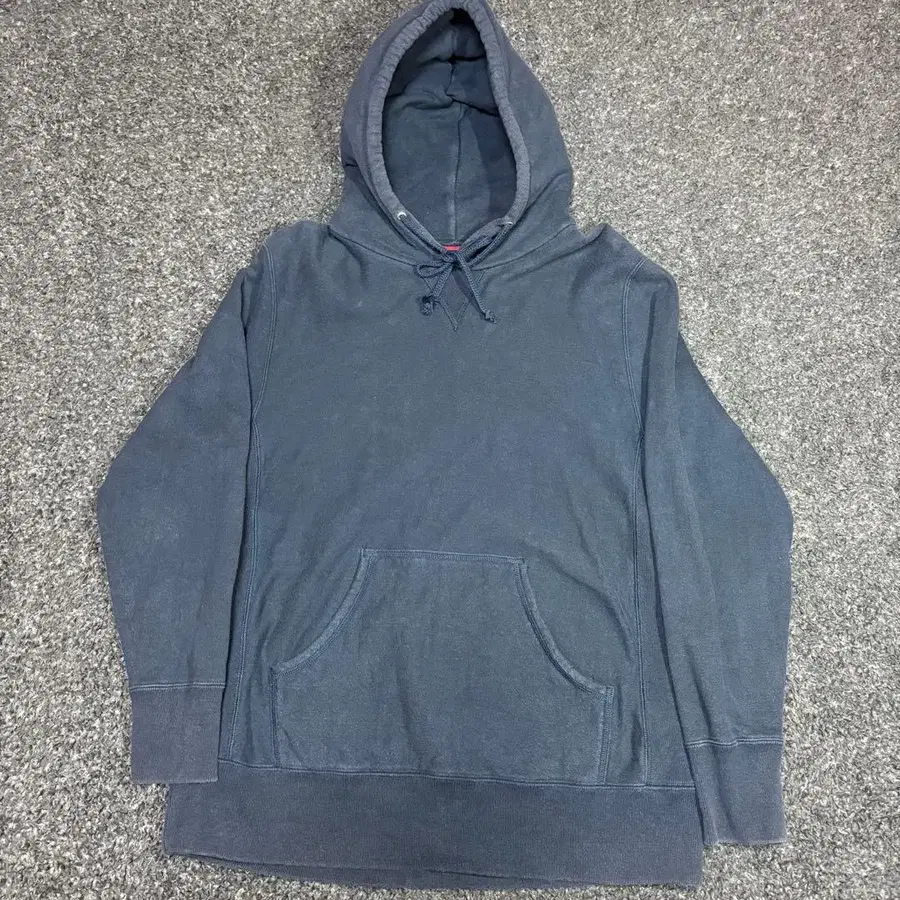 자동 번역되었어요. 원문보기네이비 색상의 후드 부착 후드티, 프론트 포켓 부착, プレシュランク 코튼 소재.