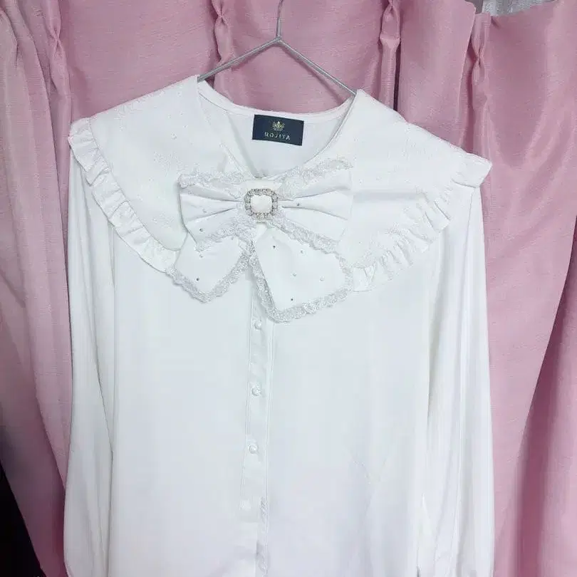 카라 레이스 진주 비쥬 리본 블라우스 ( 화이트 )