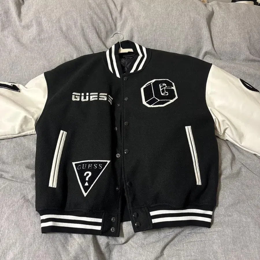 GUESS 바시티 자켓, 블랙과 화이트의 배색으로, 81 번호가 특징적입니다. - 브랜드: GUESS - 색상: 블랙/화이트 - 모델 번호: 81 - 안쪽 디자인: 퀼팅 안감 방문해 주셔서 감사합니다. 가격 인하 가능합니다. 거의 착용하지 않았습니다.