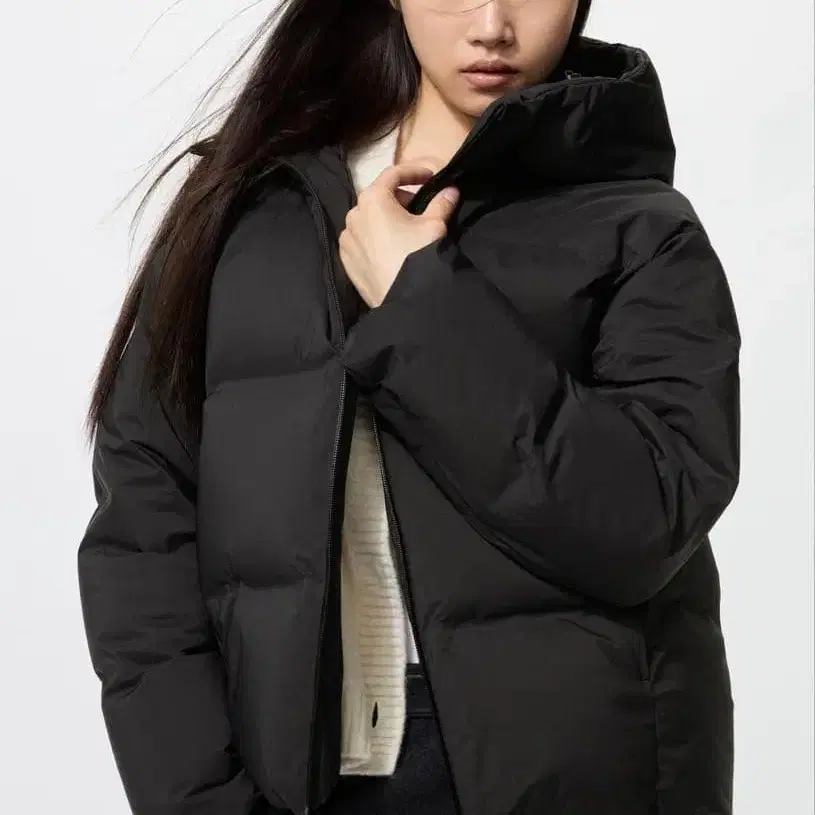 유니클로 블랙 심리스 다운 후드티 (3D 컷) S