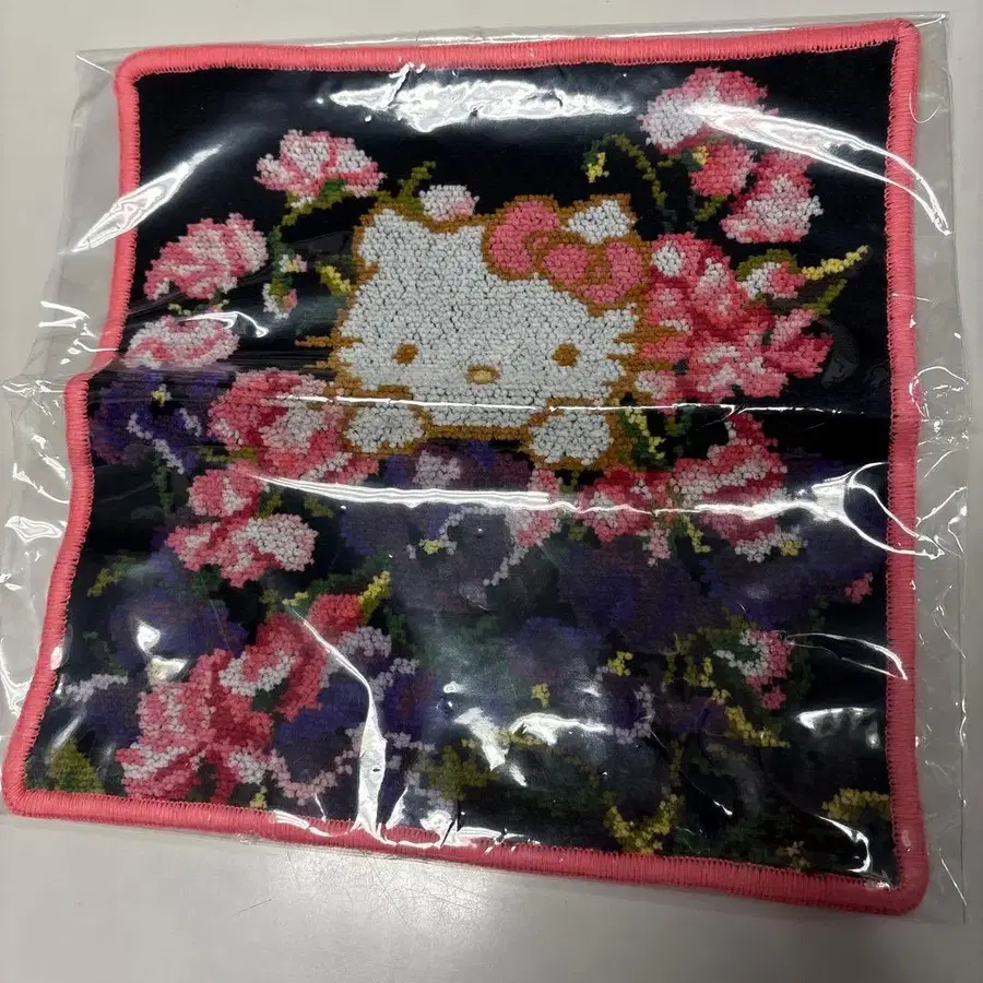 블랙과 핑크 꽃무늬 디자인의 Hello Kitty 손수건, 코튼 100%. - 브랜드: FEILER - 캐릭터: Hello Kitty - 소재: 코튼 100% - 디자인: 꽃무늬 - 색상: 블랙과 핑크 방문해 주셔서 감사합니다.