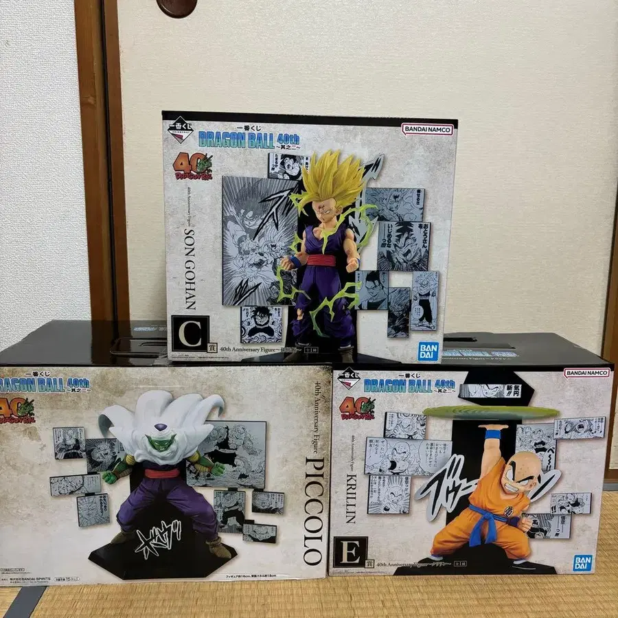 드래곤볼 40th 제일복권 제2탄 C상 40th Anniversary Figure ~손오반~ D상 40th Anniversary Figure ~피콜로~ E상 40th Anniversary Figure ~크리링~ 3종 세트 종이상자에 포장하여 발송합니다. 트러블 방지를 위해 반품 및 교환 불가