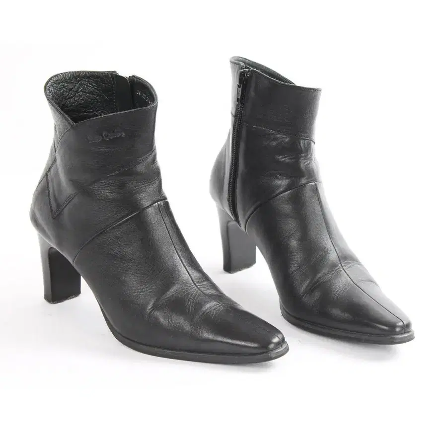 사이즈 EU 36.5 UK 4 US 6 가죽 소재의 블랙 앵클부츠, 스틸레토 디자인과 사이드 지퍼 부착. - 색상: 블랙 - 소재: 가죽 - 디자인: 스틸레토 - 굽 높이: 중간 굽 - 지퍼: 사이드 지퍼 - 스타일: 앵클부츠 방문해 주셔서 감사합니다.
