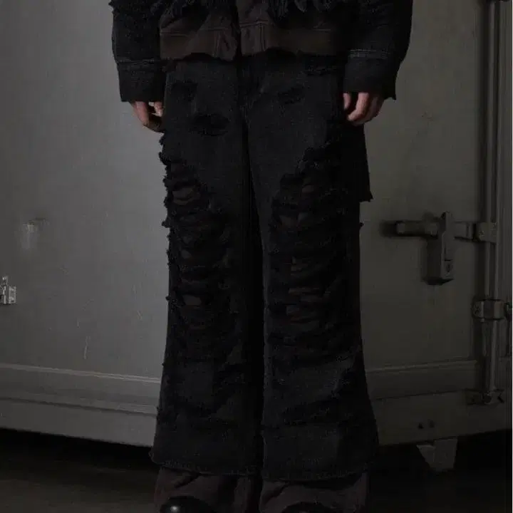 데미지 가공 스키니 데님 블랙