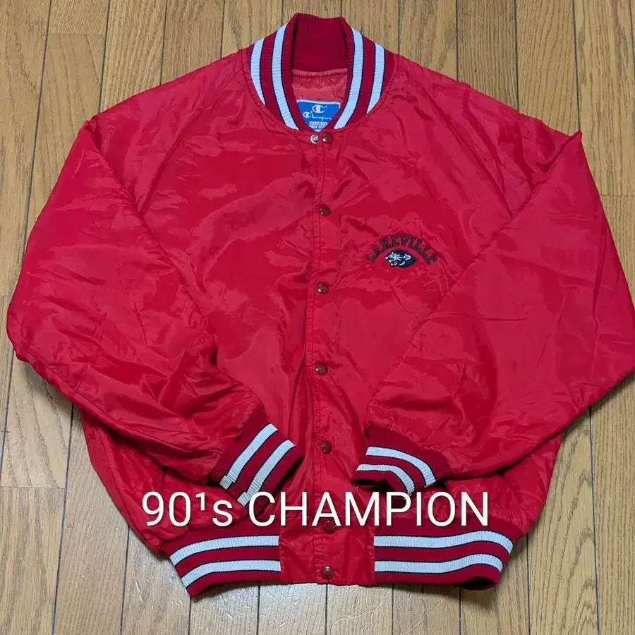 90년대 Champion 바시티 자켓 Made in USA XL 레드