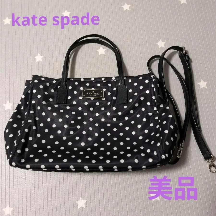 블랙 베이스에 화이트 도트 무늬, 지퍼 달린 포켓이 있는 백.