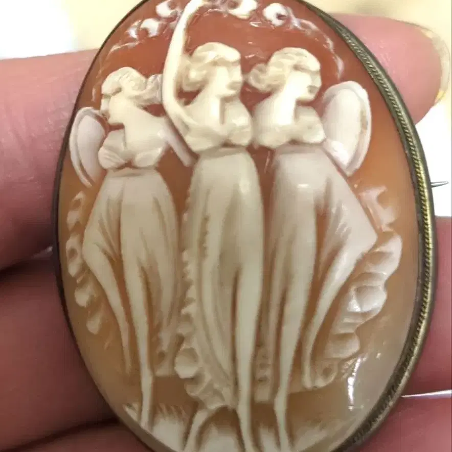 세 명의 여성이 조각된 타원형 2way 브로치 (펜던트 헤드) 800 각인 있음 - 디자인: 세 명의 여성 조각 - 소재: 실버 프레임 - 모양: 타원형 - 색상: 오렌지와 크림색 그라데이션
