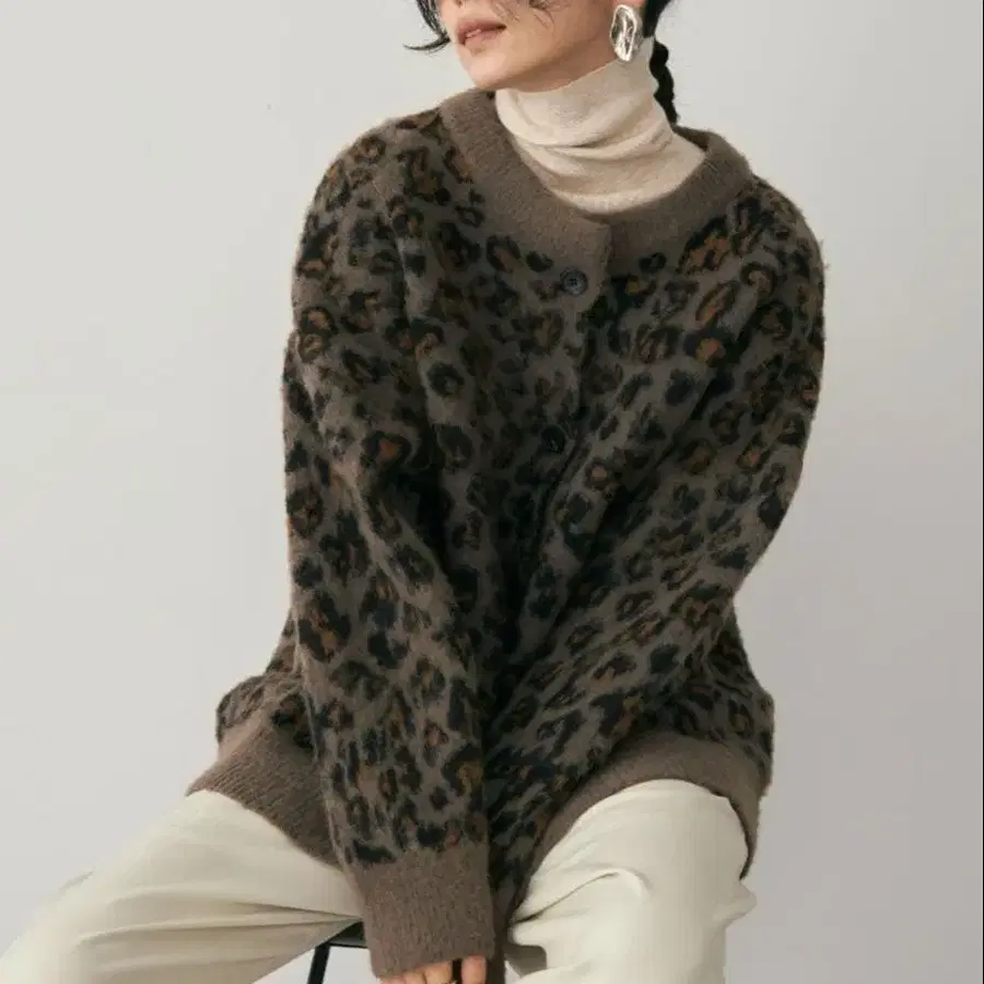 슬로브 이에나 샤기 모헤어 MIX 레오파드 가디건