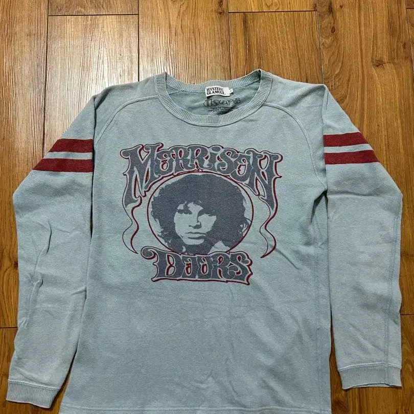 MORRISON DOORS 프린트가 들어간 그레이 맨투맨, 스트라이프 디자인의 소매 포함, 사이즈 S. - 브랜드: HYSTERIC GLAMOUR - 디자인: MORRISON DOORS 프린트 - 색상: 그레이 - 사이즈: S - 특징: 스트라이프 디자인의 소매 방문해 주셔서 감사합니다.